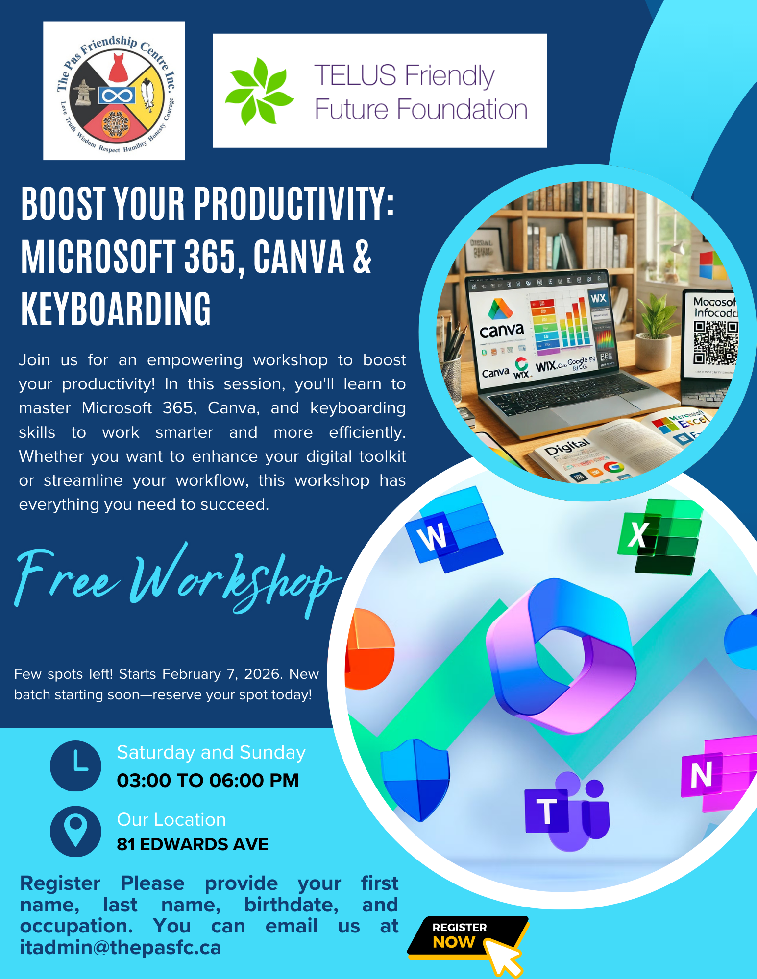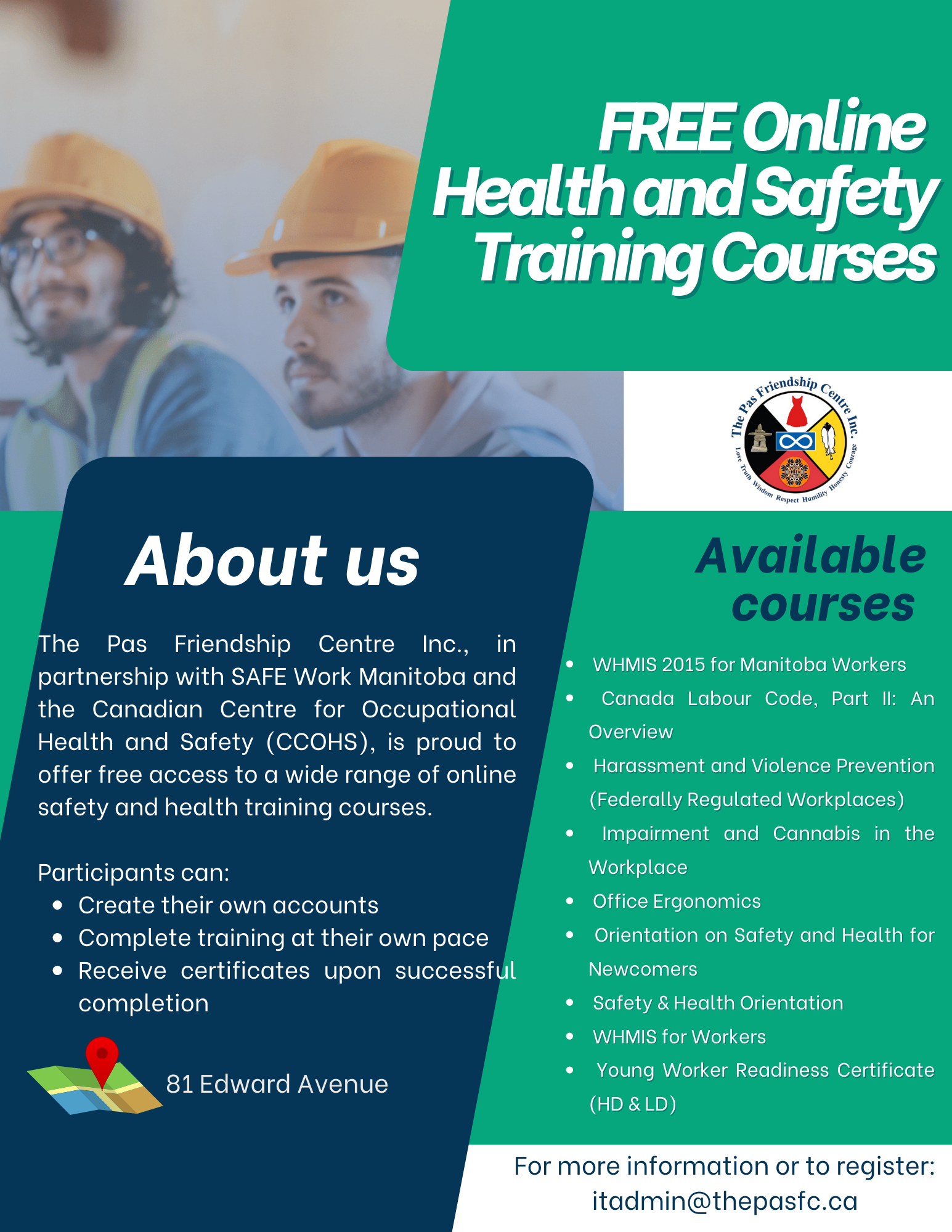 The Pas Friendship Society is a registered non-profit society, founded in 1999. Pas Fc is a part of the Friendship Centre Movement, which includes the National Association of Friendship Centres, provincial associations, and Friendship Centres throughout Canada. As part of this movement, Pasfc provides programs and services to all peoples in all four stages of life: infants/children, youth, adults, and Elders.The Pas Friendship Centre Inc. is committed to providing positive social and cultural programs and services while promoting Aboriginal pride and community harmony.