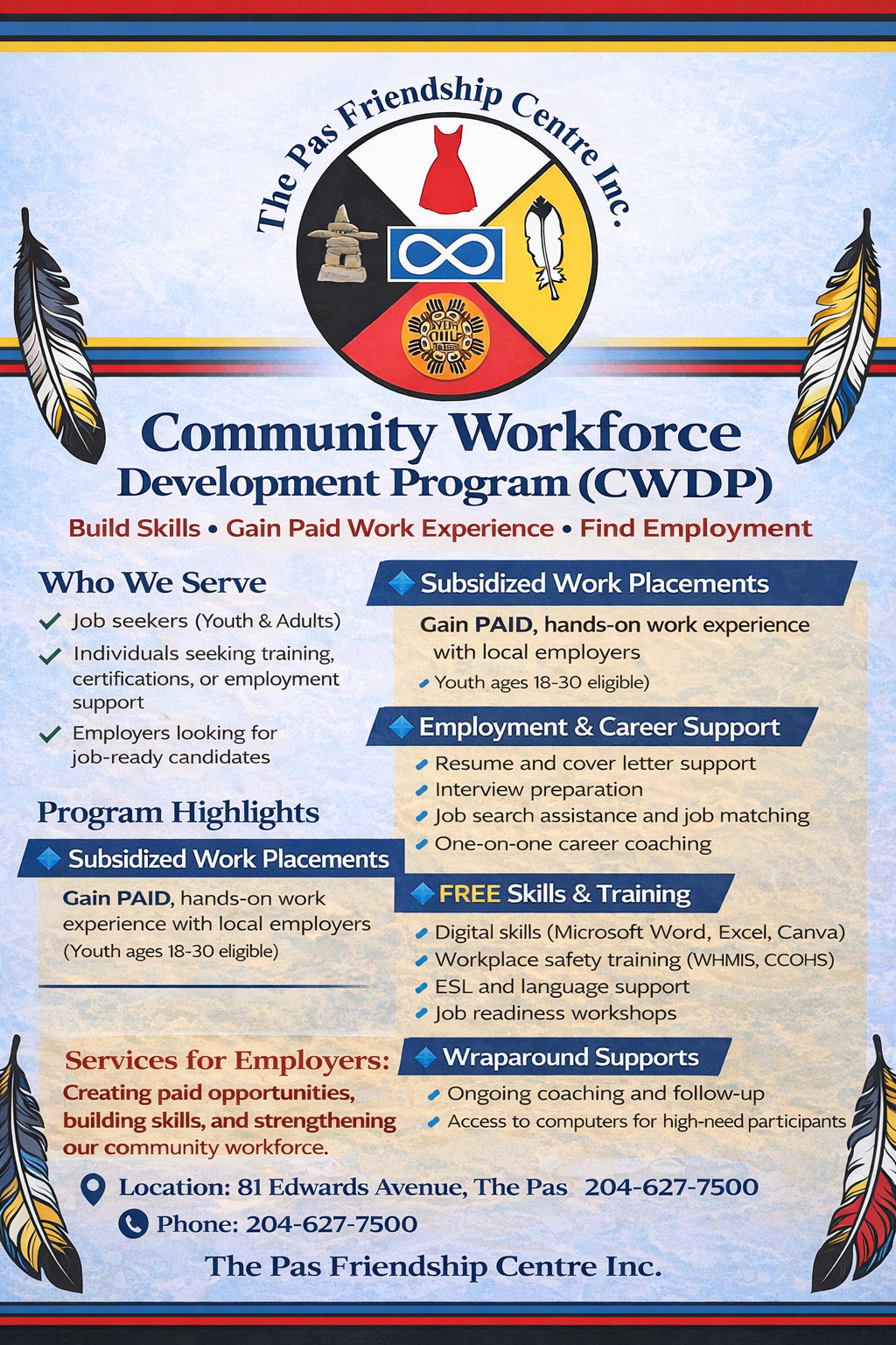 The Pas Friendship Society is a community that honours Indigenous culture, knowledge, and values by advocating and supporting the wholistic vision of building a strong, sustainable foundation through healing and empowerment.