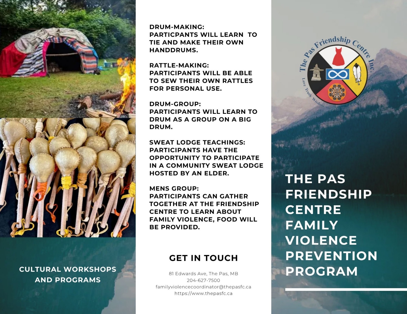 The Family Violence Prevention Program at The Pas Friendship Centre is a culturally grounded initiative designed to support Indigenous youth and men through education, healing, and community connection. The program focuses on strengthening identity, promoting healthy masculinity, and preventing family and gender-based violence through land-based and cultural learning.