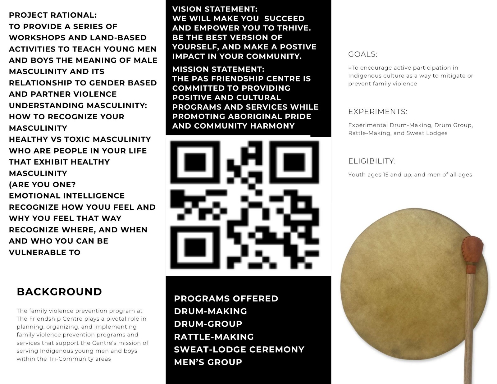Participants will learn how to tie and make their own hand drums, gaining cultural knowledge and practical skills while strengthening personal identity.